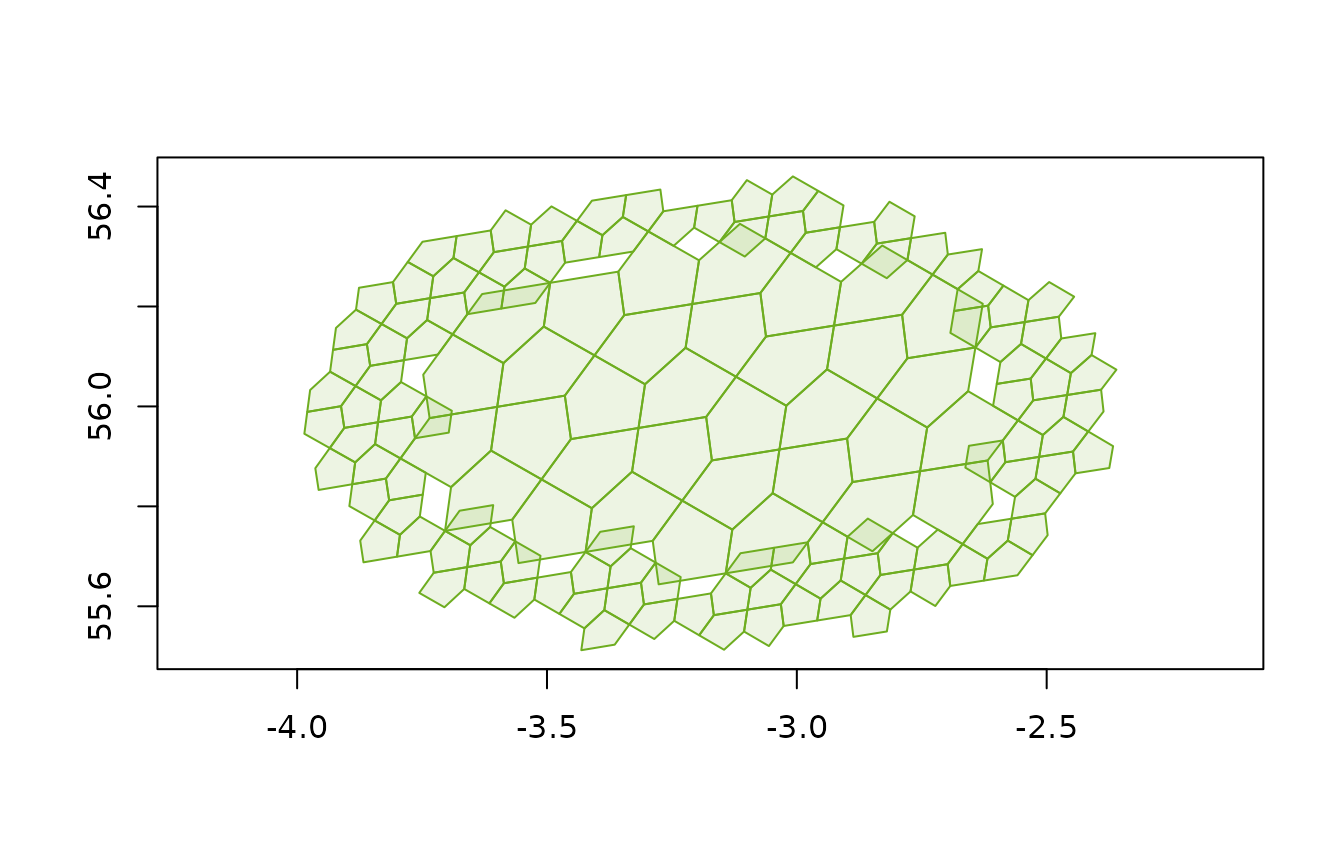 plot(a5_cell_to_boundary(cap), col = "#6ead2020", border = "#6ead20", asp = 1)